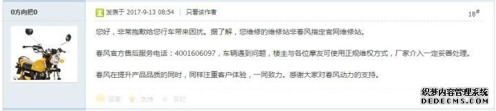 目前国内,各大品牌关于曲轴连杆断裂的新闻并不多见,春风大排量摩托车在一定程度上也代表着国产摩托车的最高制造水平,加上前期国宾车在国庆大典阅兵仪式上的亮相,也大大提升春风摩托的曝光度,TR断连杆、TR-G爆缸事件的发生,引起了摩托行业与车友圈的广泛关注。