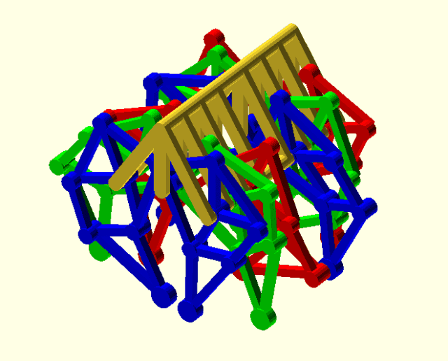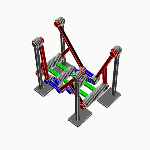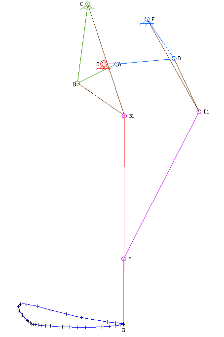 是由Jansen发明的,用于模拟平稳行走,Jansen利用这种连杆制造了著名的海滩巨兽,这种连杆兼具美学价值和技术优势,通过简单的旋转输入就可模仿生物行走运动,这种连杆已经用于行走机器人和步态分析。