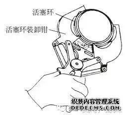 第一道气环是矩形环,第二道气环是锥形环,油环为组合式,用活塞环装卸钳依次装好。注意,“TOP”朝向活塞顶部,三环开口错开120°,第一环开口位置与活塞销中心错开45°。